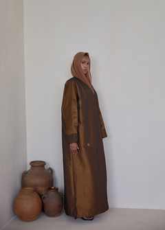 A soft, warm cream tone brought to life through our smooth, lightweight taffeta. Akaroa Cream falls effortlessly with a relaxed, straight-cut silhouette that flatters without overwhelming. Paired with a matching headscarf, it creates a serene, monochromatic moment — refined, breathable, and beautifully versatile for every day or occasion.
