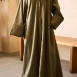 The oversized sleeves and loose fit of the dress creates a modest and elegant look that sits effortlessly on the body.