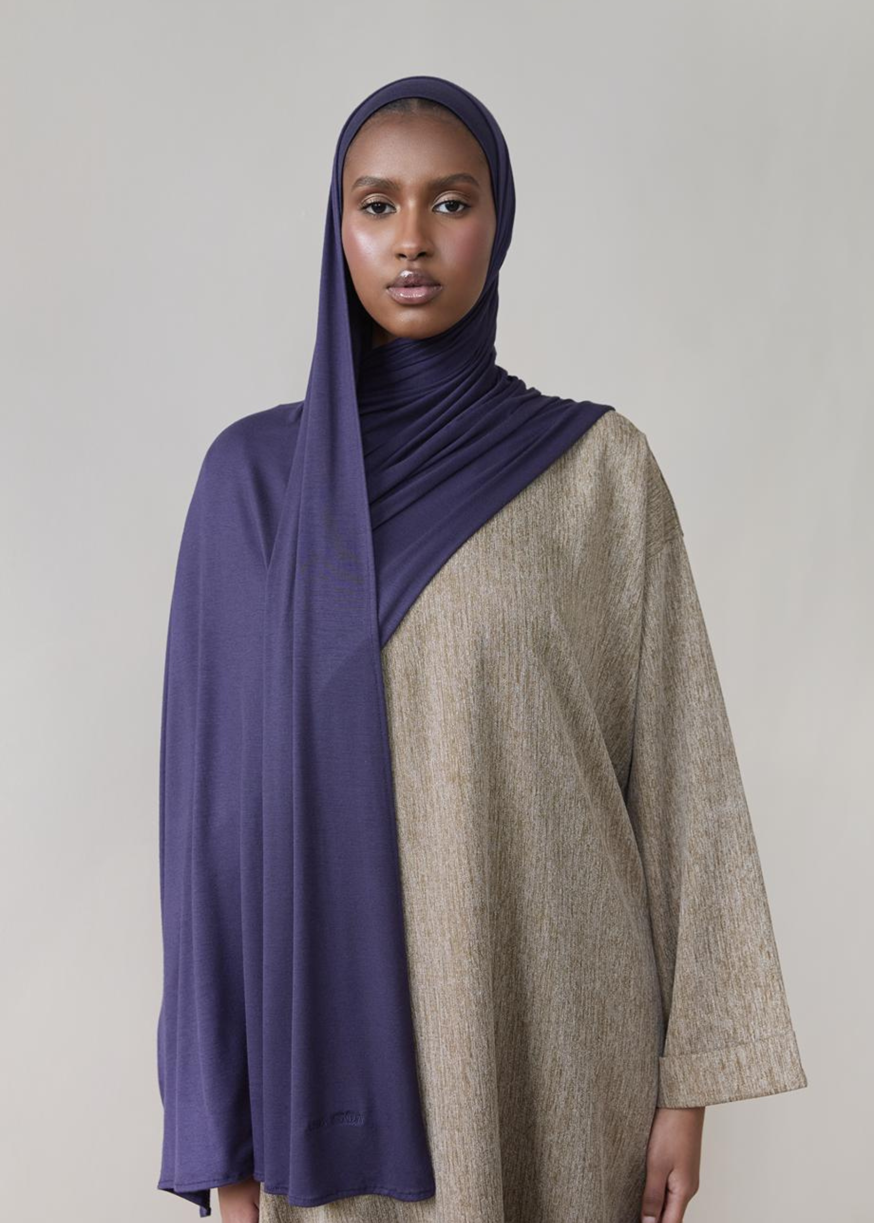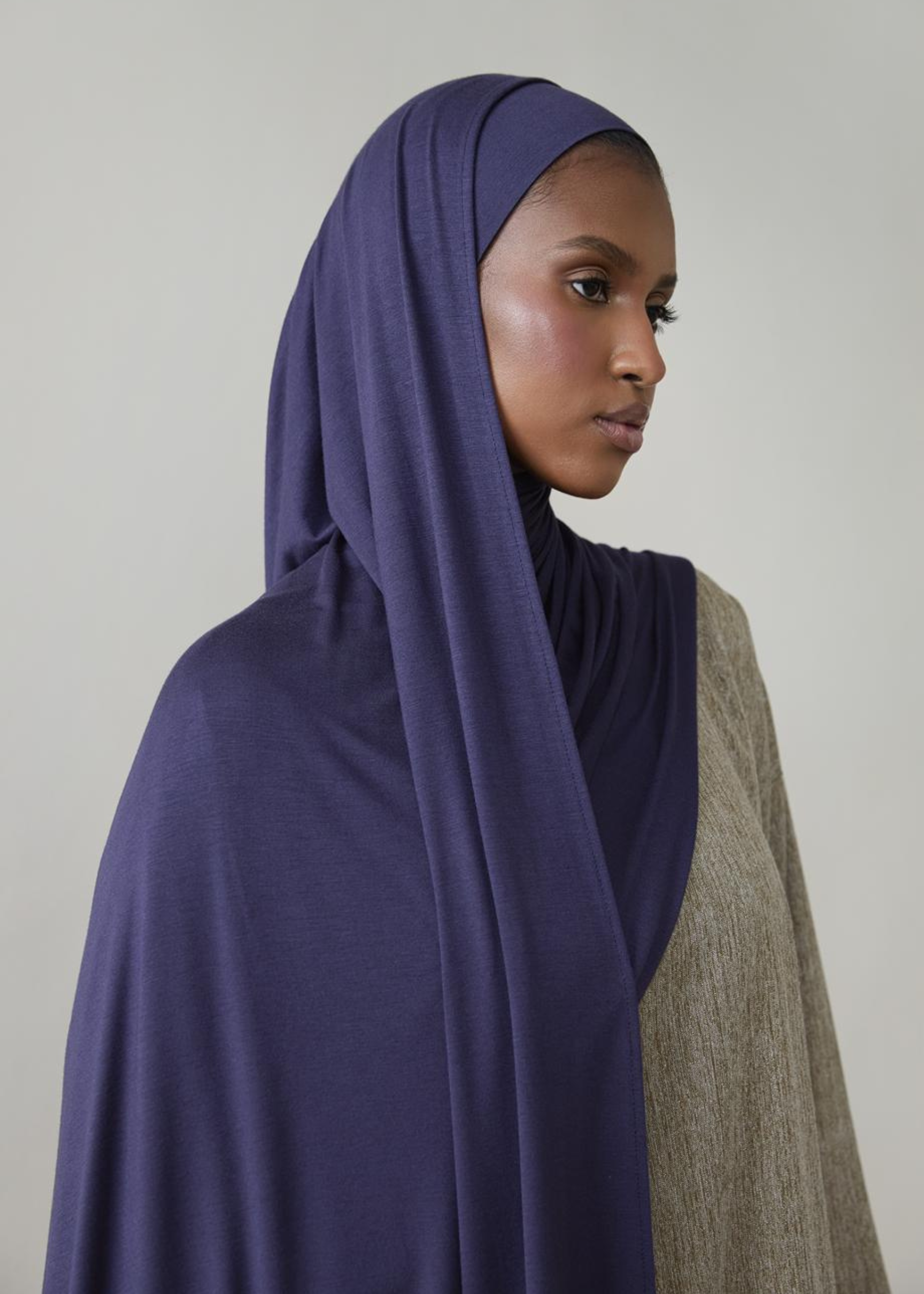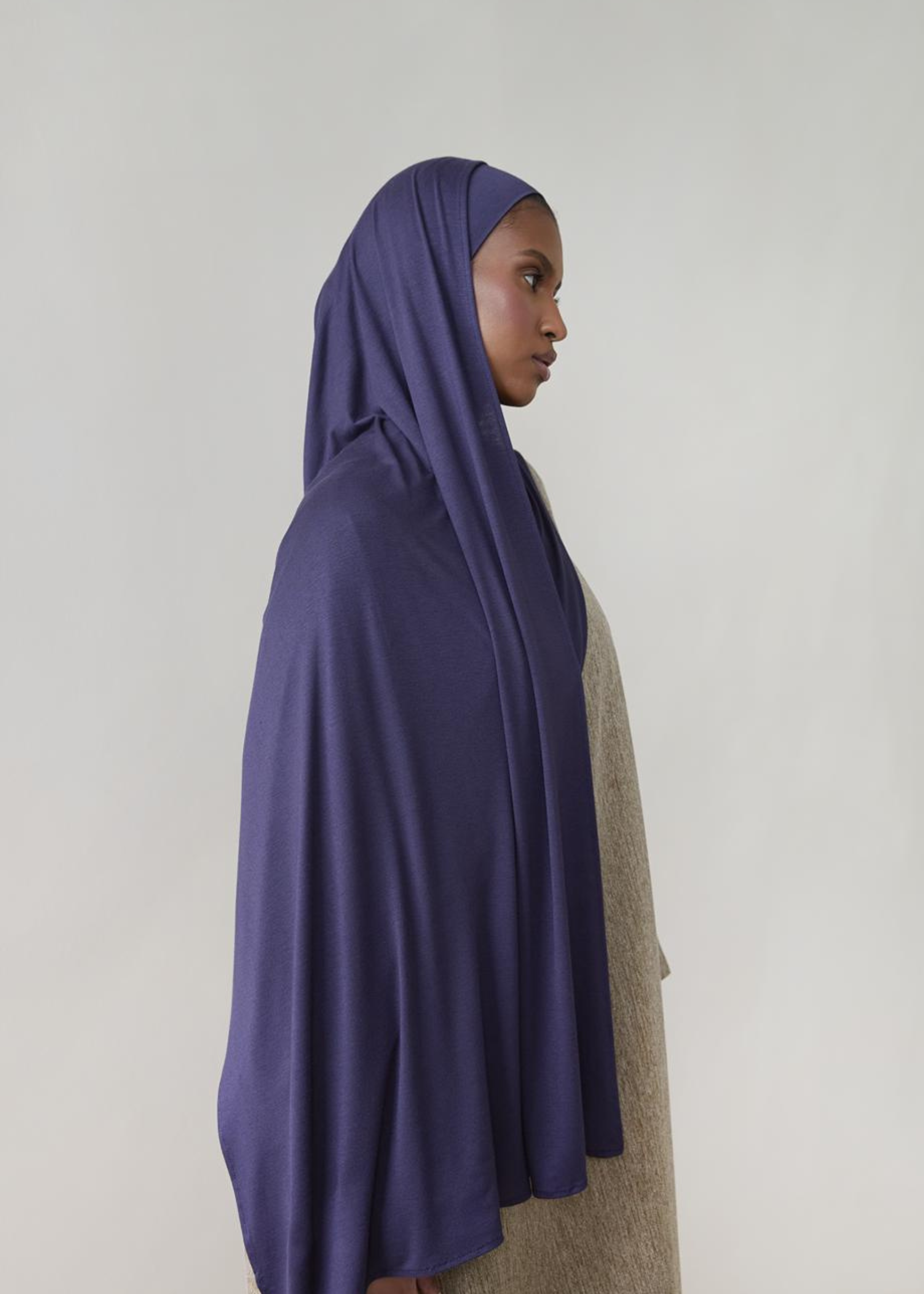 Navy blue maxi jersey hijab and matching under scarf, an essential piece for every modest wardrobe.