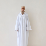 The oversized sleeves and loose fit of the dress creates a modest and elegant look that sits effortlessly on the body.